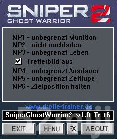 | 2013.03.18 | 狙击手:幽灵战士2v1.0修改器 + 6 | FairLight v1.0 | - |