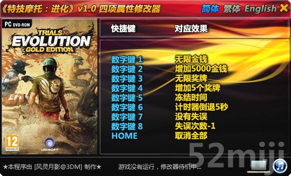 | 2013.03.22 | 特技摩托:进化-黄金版v1.0修改器 + 4 | v1.0 | - |
