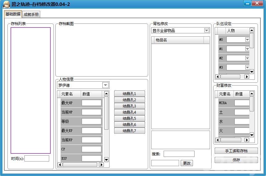 | 2013.04.12 | 英雄传说:碧之轨迹存档修改器v0.05 | v1.0 | v0.05 |