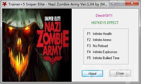 狙击精英:纳粹僵尸部队v1.04 DX9 & 11修改器 + 5