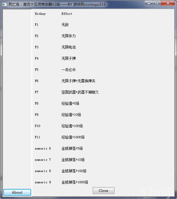 2013.04.24,死亡岛:激流十五项修改器V2版,修正使用金钱加倍时,死亡减少金钱也增倍BUG。