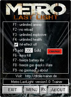 | 2013.05.20 | 地铁:最后的曙光v1.0修改器 + 9 | FLD v1.0 | - |