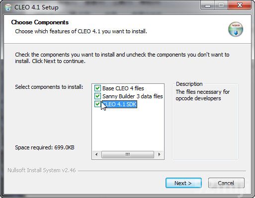 Sanny Builder是CLEO的编写器,如果你不打算从事CLEO开发编写,这一步不选直接点击下一步即可。