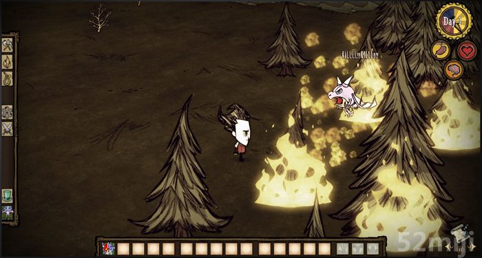 你能够召唤一直小蓝龙,通过右击召唤它的那个东西你可以切换技能(甚至它睡觉的时候你还可以烤熟食物 =。=),右击小蓝龙你可以施放当前选中的技能。