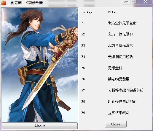 本修改器支持古剑2试玩版,待正式版推出之后将会随之更新并增加一些新的功能,大家有兴趣可随时保持关注。