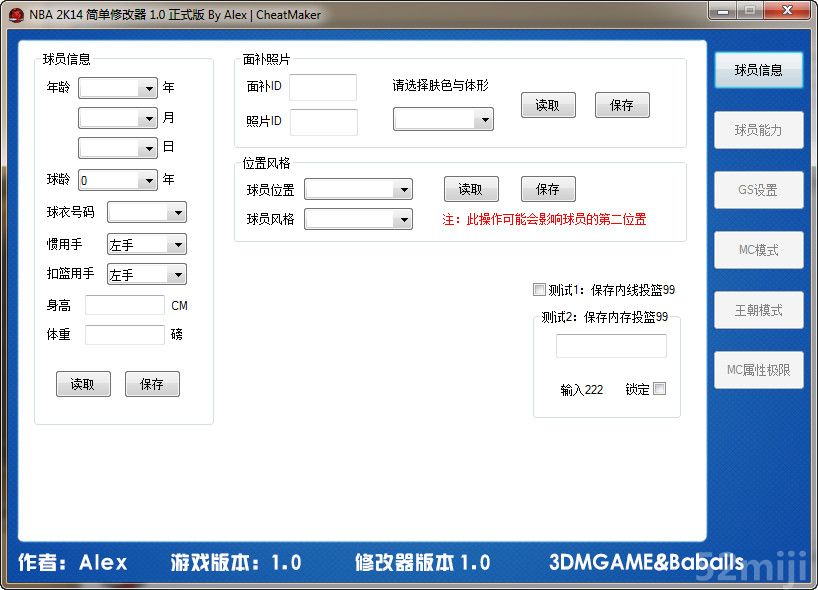 用于修改照片,体形肤色,身高体重,MC和自建球员面补!