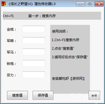 《信长之野望14:创造》资源修改器,可修改游戏金钱、军粮、军马、铁炮数值。