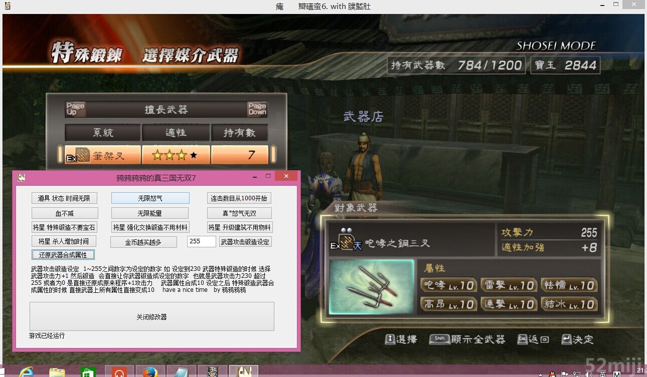 在前面编辑框中输入想要达到的武器攻击力(1~255之间) 然后进行特殊锻造 武器攻击+1 锻造之后就会直接变成你所设定的武器攻击力 另外 如果输入数字大于255或者等于0 会直接还原成原来的程序 也就是武器攻击力+1的情况