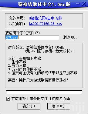 对应版本:寰神结繁体中文1.06e(包含免CD,随时存档,最大成长三项功能。)