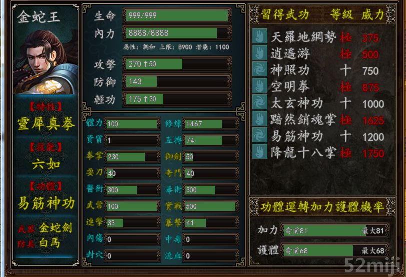 打金轮,没太玄,就是打不过,无奈练上太玄。但是金轮还是过得比较苦,总算过了。脸不是太好,最后六如基本不出。再来全真,往外跑,我有点贪,其实没必要直接跑就可以了。差点功亏一篑。