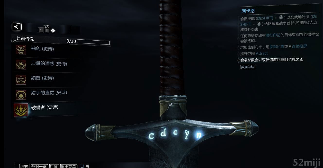 史诗符文共50,其中剑26,弓10,匕首14;白色的都换钱了,蓝色的去掉了重复的。