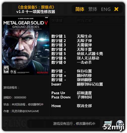 | 2014.12.31 | 合金装备5:原爆点v1.0-v1.002修改器 + 15 | v1.0-v1.002 | - |