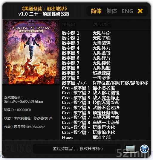 | 2015.01.23 | 黑道圣徒:逃出地狱v1.0修改器 + 21 | v1.0 | - |