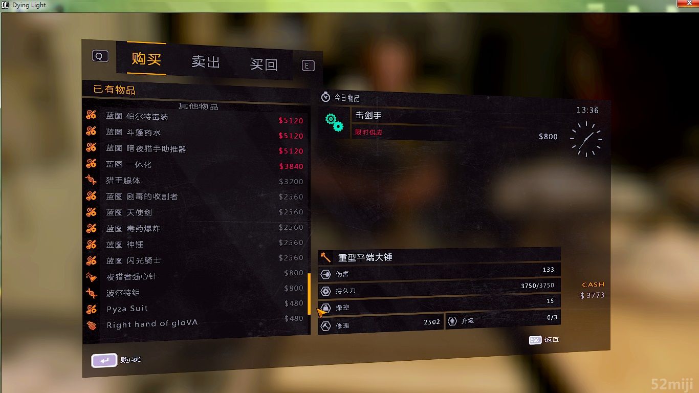 安装路径:X:Dying LightDW里的Data0.pakdatascriptstrading覆盖(记得备份)