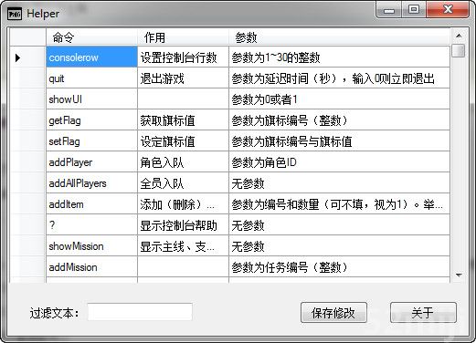 点击“命令查询”后,可以看到一些命令的帮助,由本人从dll中扒出。命令的说明可自行修改,点击下图所示箭头处可以选中一行,按Delete键删除一行。在最下方处输入可以新建一行。