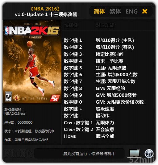 | 2016.09.17 | NBA 2K16修改器 + 13 | 支持Update 10最新版 | - |