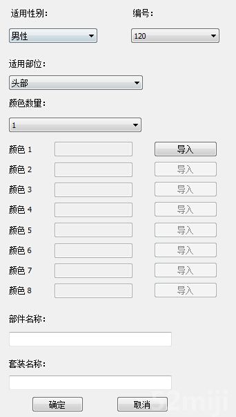 要添加1套请用同一个编号依次添加5个部位,要求性别,编号,防具名与套装名全部相同!!