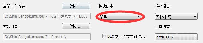 准备工作:首先将红圈处的游戏版本切换为“帝国”,然后将游戏目录修改为帝国的……