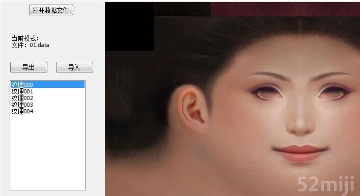 4.打开上面的工具,选择“纹理查看->打开数据文件”,打开第二步里解包出来的贴图文件,找到要修改的纹理,导出,改好后导入,然后保存