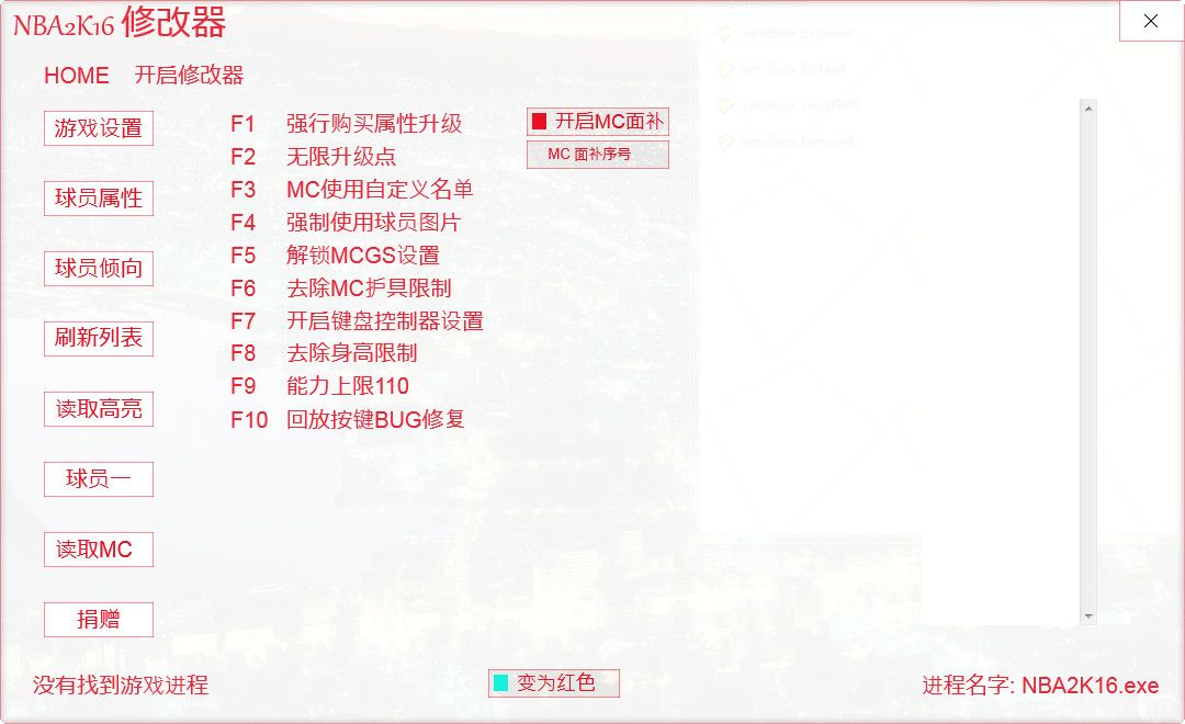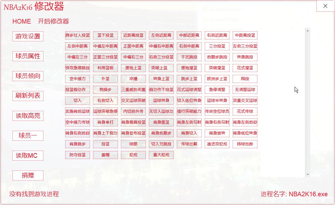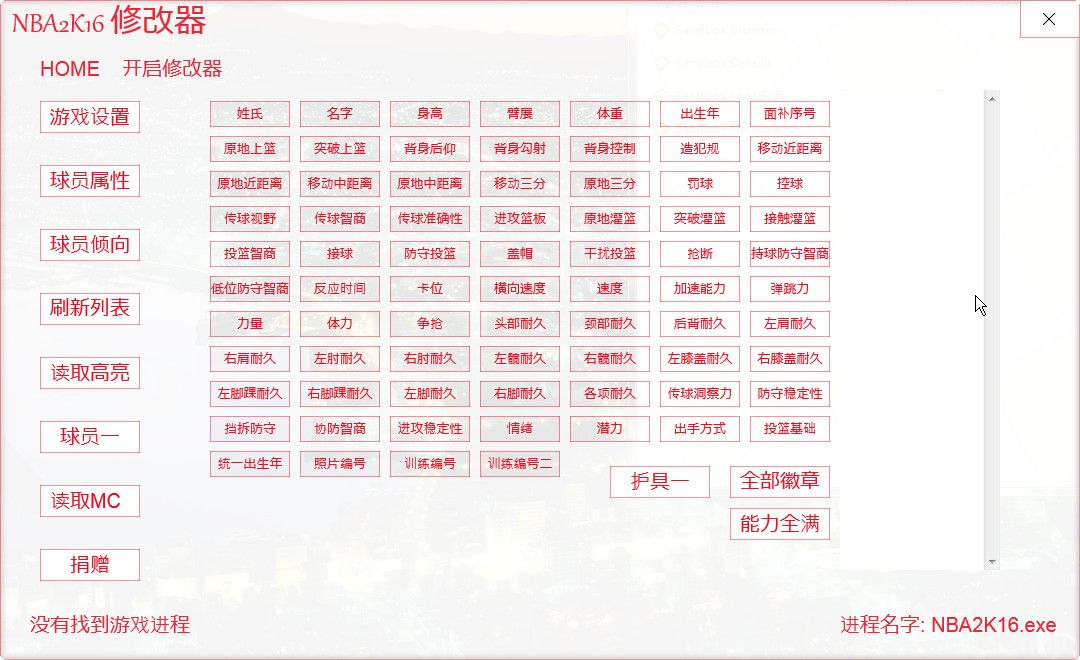 | 2015.12.21 | NBA 2K16球员属性编辑器 | 支持0-6升级档 | v12182020 |