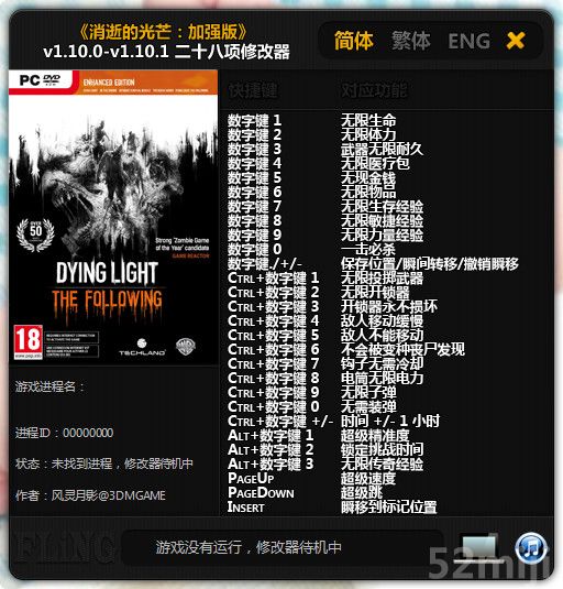 | 2017.01.25 | 消逝的光芒:加强版修改器 + 28 | 支持v1.12.1最新版 | - |