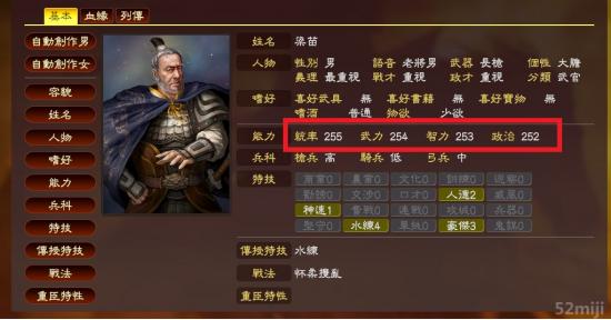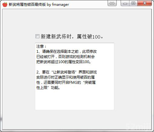 1、请确保在选择剧本之前,已经打开了此项修改;否则游戏的检测机制会把新武将超过100的属性变回100.