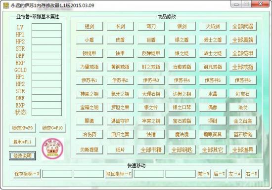 更新永远的伊苏1内存修改器1.1版2015.03.09