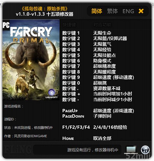 | 2016.10.02 | 孤岛惊魂:原始杀戮修改器 + 12 | v1.1.0-v1.3.3 | - |