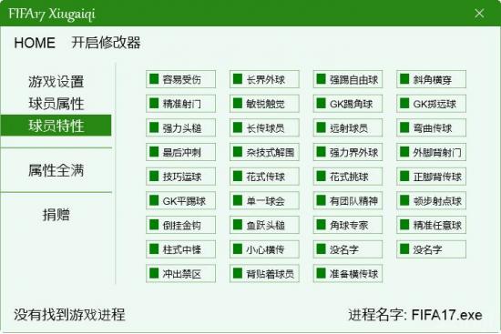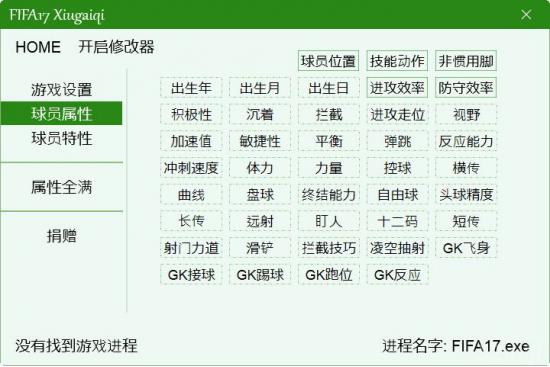 | 2017.02.20 | FIFA 17球员属性特性编辑器 | 支持0-5号升级档 | Build 170217 |