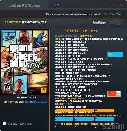 | 2016.10.11 | 侠盗飞车5修改器 + 24 | Steam v1.0.877.1 | - |