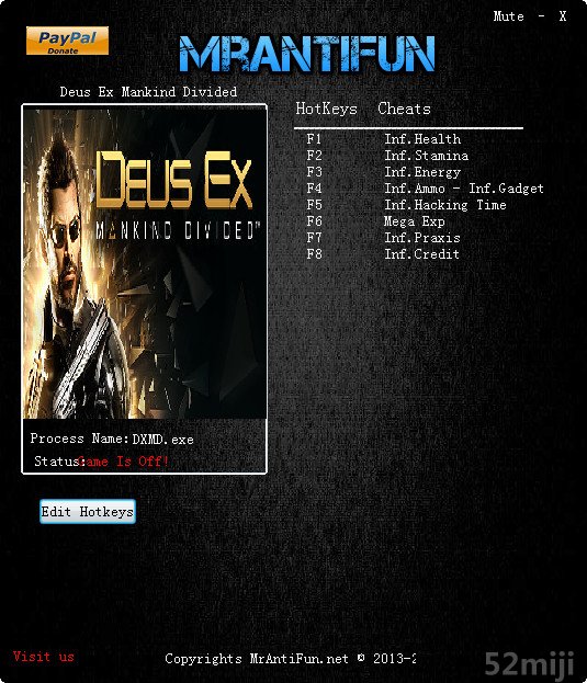 | 2016.08.26 | 杀出重围:人类分裂v1.1修改器 + 9 | v1.1 Build 524.10 | - |