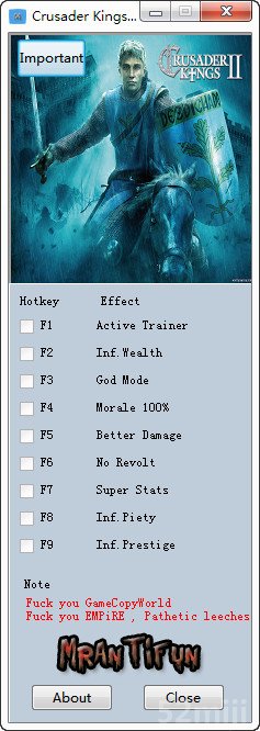 | 2014.11.02 | 十字军之王2v2.2修改器 + 8 | Steam v2.2 | 有网页弹出 |