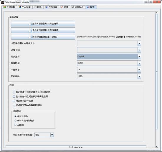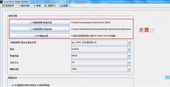 第一步:选择恐怖黎明安装目录、存档目录及设置ARZ提取目录