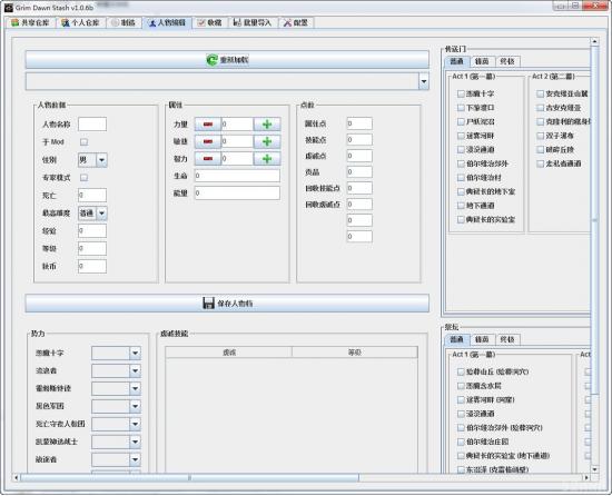 新版功能:修改人物属性,将所有难度的所有传送门及祭坛全部点亮!另外,还可调整各种势力的声望。