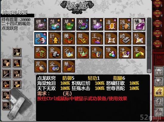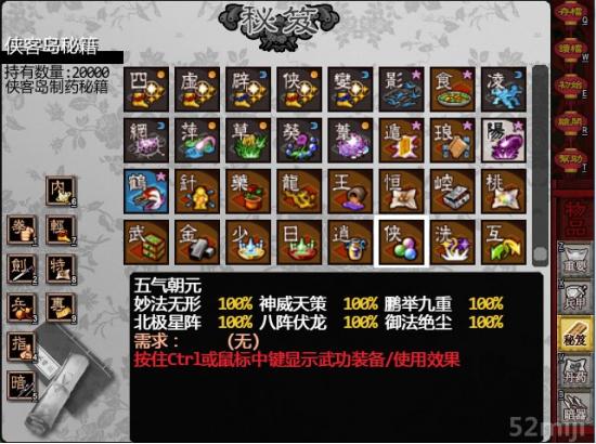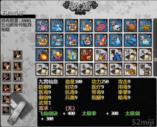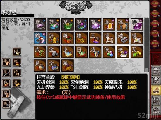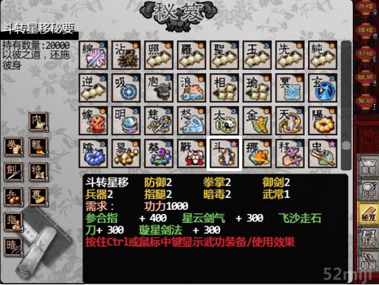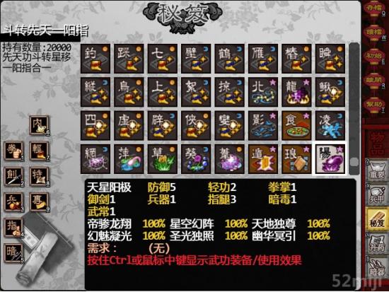 触发特技武功:秘笈是遁甲天书.天星阳极.点龙跃窍.洗髓经,自行选择学习。