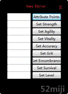 点击修改器左下角的Game Editor按钮,可编辑人物属性,从上到下依次对应