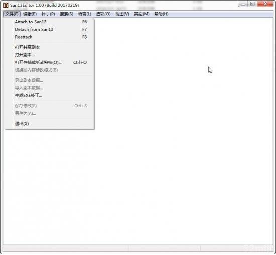 如果要修改内存,在进入游戏之后,执行File菜单的Attach to San13(修改器什么时候打开没有关系),此时各项功能就可以正常使用