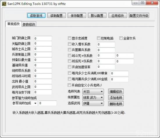 9. (已经拥有个人配置文件)点读取配置文件之后,添加老师,先选择武将,在选择传授属性,点击添加老师,需要添加的老师都添加完毕,点应用修改,就成功添加了;删除很容易,选中需要删除的老师,点删除,删除动作结束时,点应用修改. 需要保存已经修改的老师列表,记得保存配置文件。