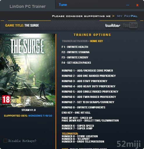 | [F3] | 无限体力 |