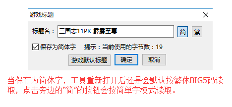 当保存为简体字,工具重新打开后还是会默认按繁体BIG5码读取,点击旁边的“简”的按钮会按简单字模式读取。