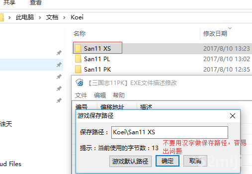 原游戏路径是“XX盘:\我的文档\Koei\San11 Tc”,能修改是的“Koei\San11 Tc”这一级子路径。
