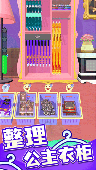 3、更多物品需要放置在对应的位置,这样才能整齐的收纳和摆放。除了普通的衣柜,你还有机会踏入公主房,一睹公主的服饰收藏。