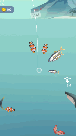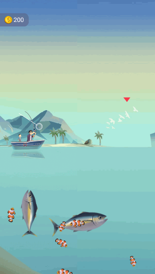 2、在适当的时候举起鱼竿,即可成功捕鱼,并获得更多金币奖励;