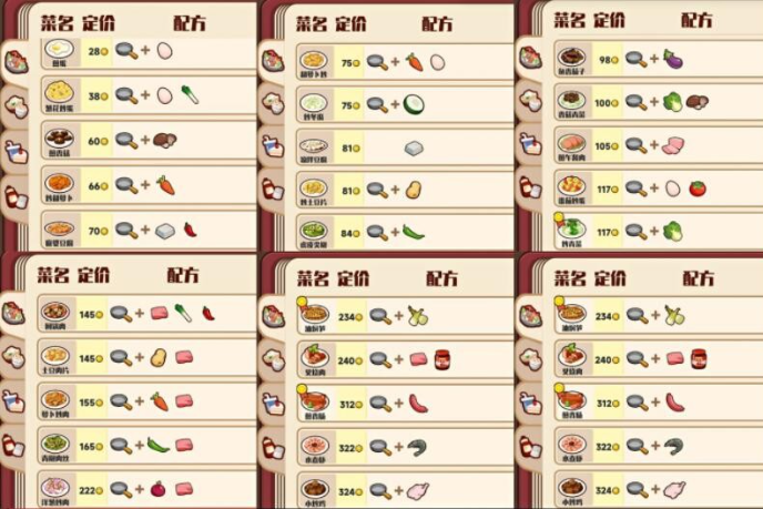 兔子与餐厅游戏 菜谱 配方有哪些?