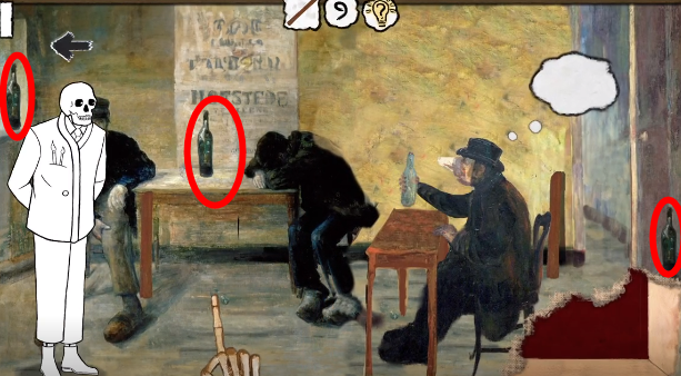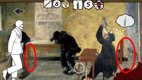 1、找东西:找的时候鼠标右键可以放大查看画面细节,同时也可以点左键选择。同时,画面上方的灯泡会提示你:当前这幅画面中是否还有未找到的部分,还有没找到的话灯泡就是亮着的,反之就是暗的。亮的时候 点击 灯泡会给出提示,实在找不到可以点开看看。