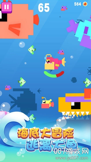 3、一款卡通像素风格的休闲小游戏,游戏轻松玩法简单有趣,玩家只要用手指操控小鱼游行的方向,在深海旅途中避开危险,逐渐成长。
