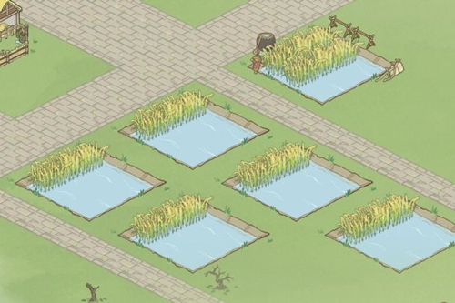 推荐优先建造水田,然后做成酒水到酒馆贩卖。水稻升级到2级需要的梨花木,可以先花30银子进行购买。
