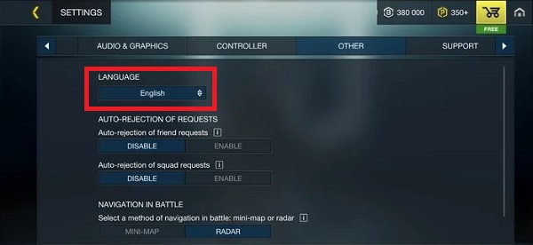 1、各位小伙伴在下载安装完游戏之后,第1次进入游戏的时候,整个游戏的界面都是英文的,这个时候需要找到language这个选项;