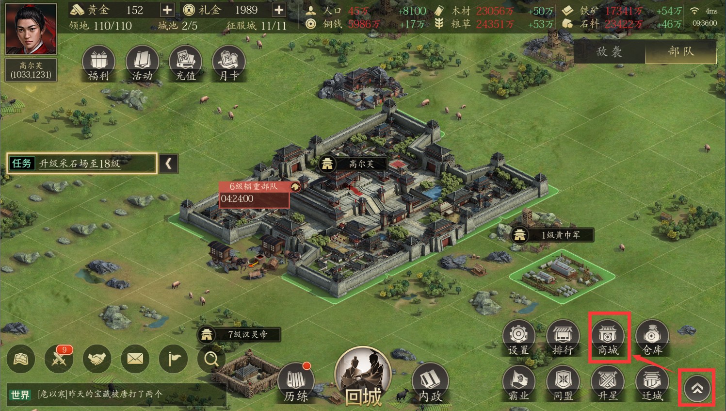 Ps:在商城购买并使用“青囊书”可以提高伤兵恢复率,减少兵种损失。