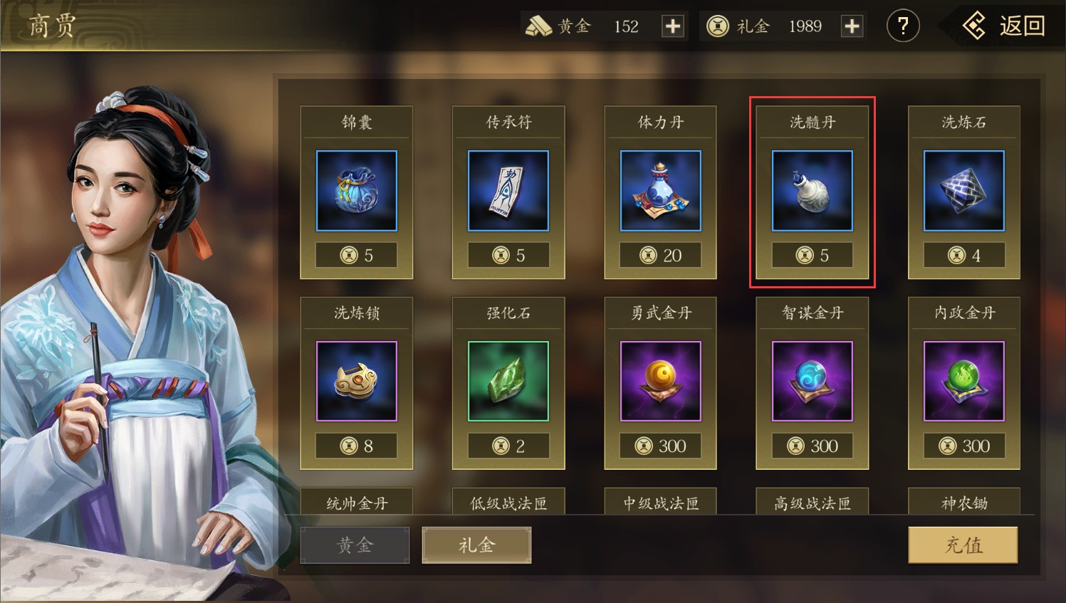 2)然后是名将的培养,名将可以通过升星、装备提升、经验书提升四维的数据。但与君主将不同的是,名将可以通过战斗获得经验,并且将领通过消耗洗髓丹将已分配的潜力点重置;将领首次洗点则会将三维(勇武、内政、智谋)的部分属性重置为潜力点,将领的品质越高洗点需要的洗髓丹数量越多。